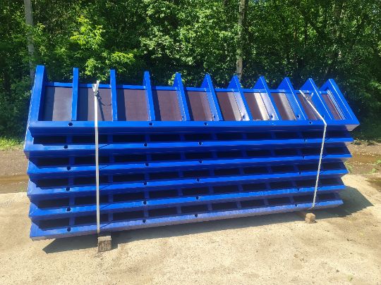 Опалубка колонн на универсальных щитах - самый практичный и универсальный вариант. Для отливки колонны используют 4 универсальных щита, из них формируют квадратную форму "внахлёст". Соединяется данная конструкция с помощью анкера торцевого, продетого через планку с отверстиями. Минимальная ширина универсального щита для отливки колонны: ширина колонны + 200мм, например, для отливки квадратной колонны сечением 400х400мм необходимы универсальные щиты шириной 600мм (400+200).
