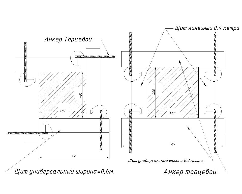 • от 200мм до 600мм, если щиты шириной 800мм;